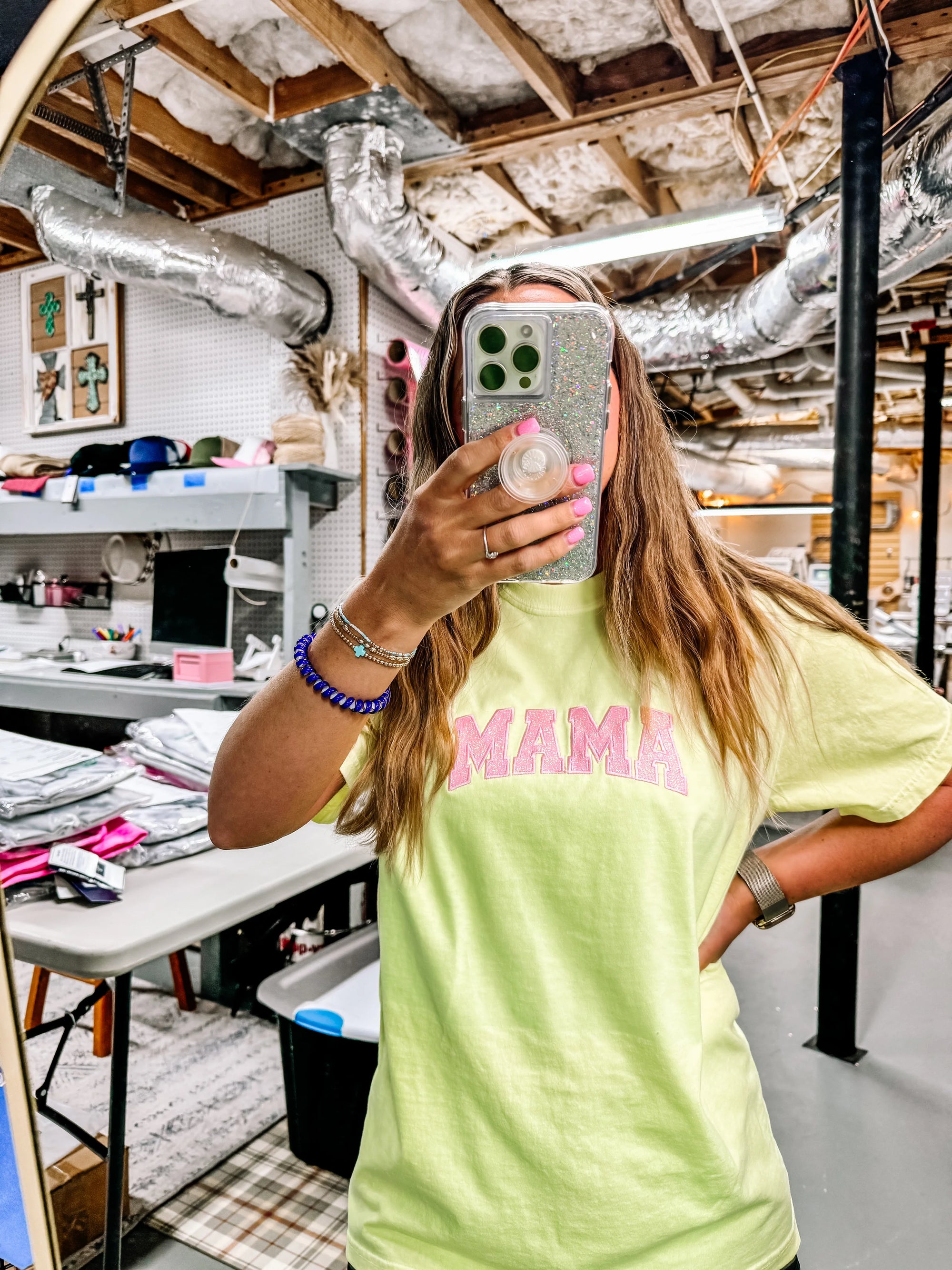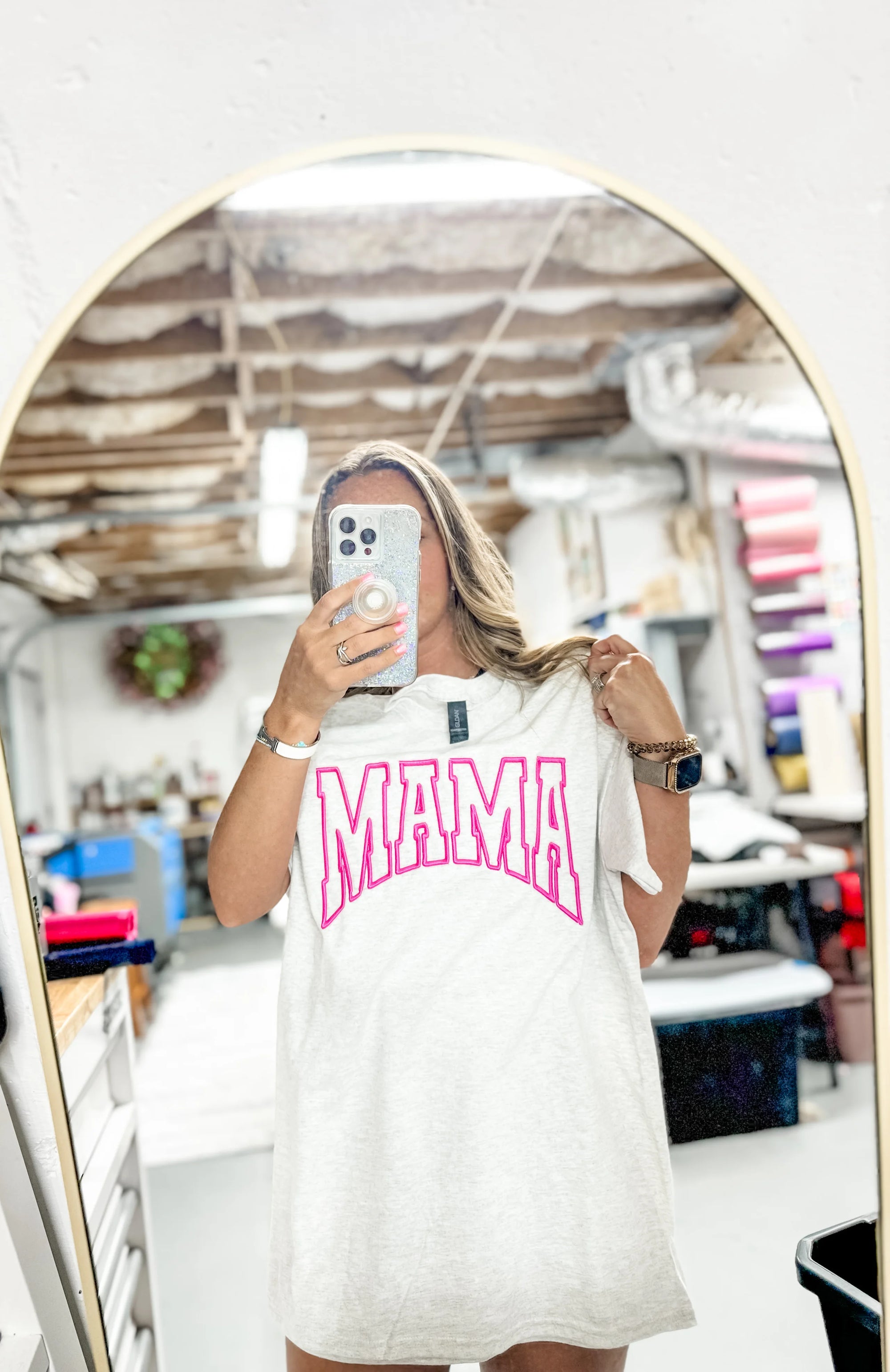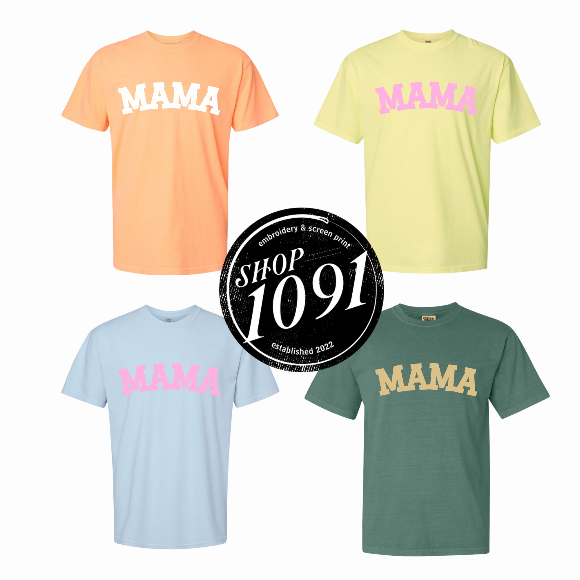 Mama Glitter Embroidered Comfort Color Tshirts