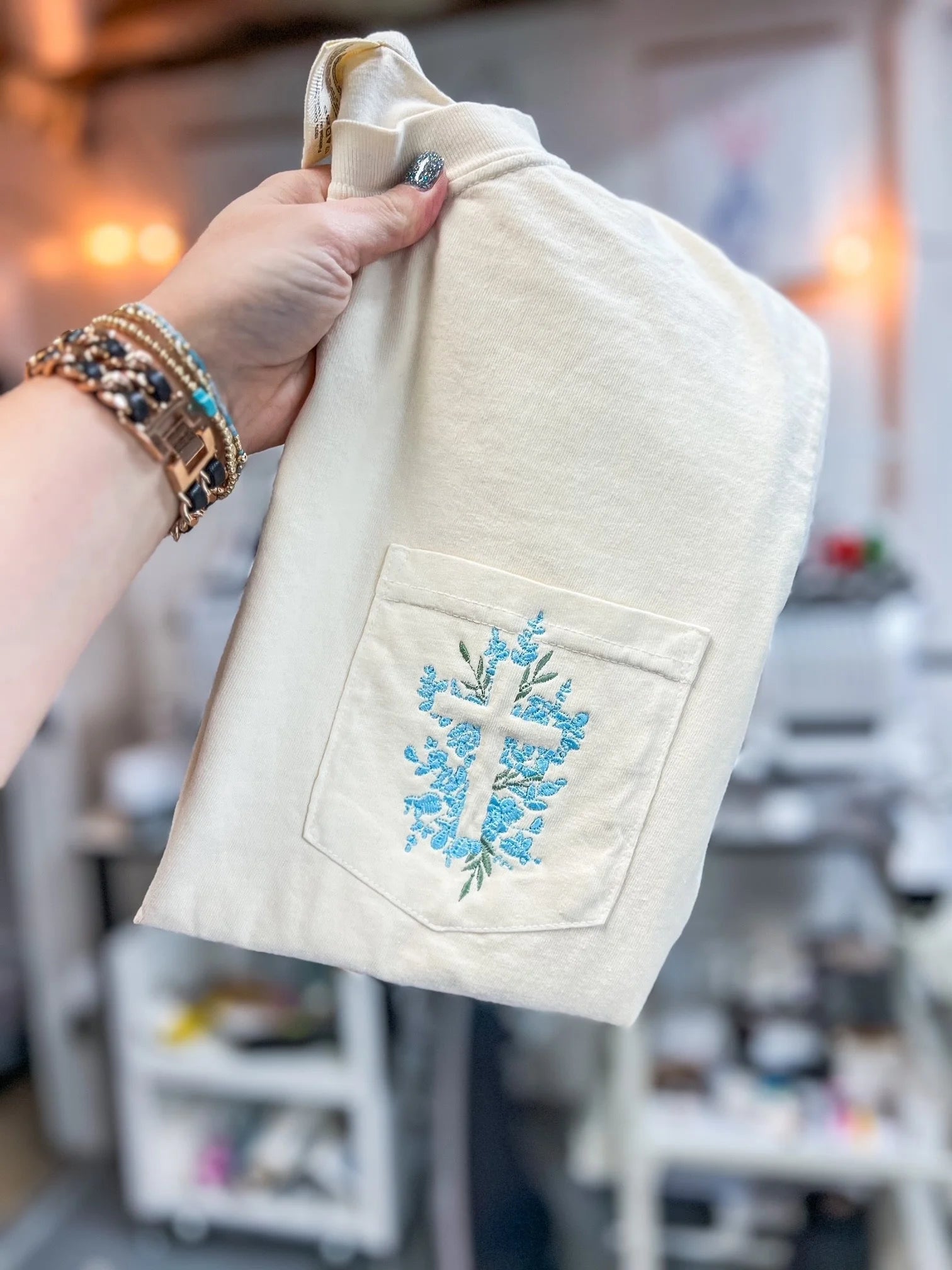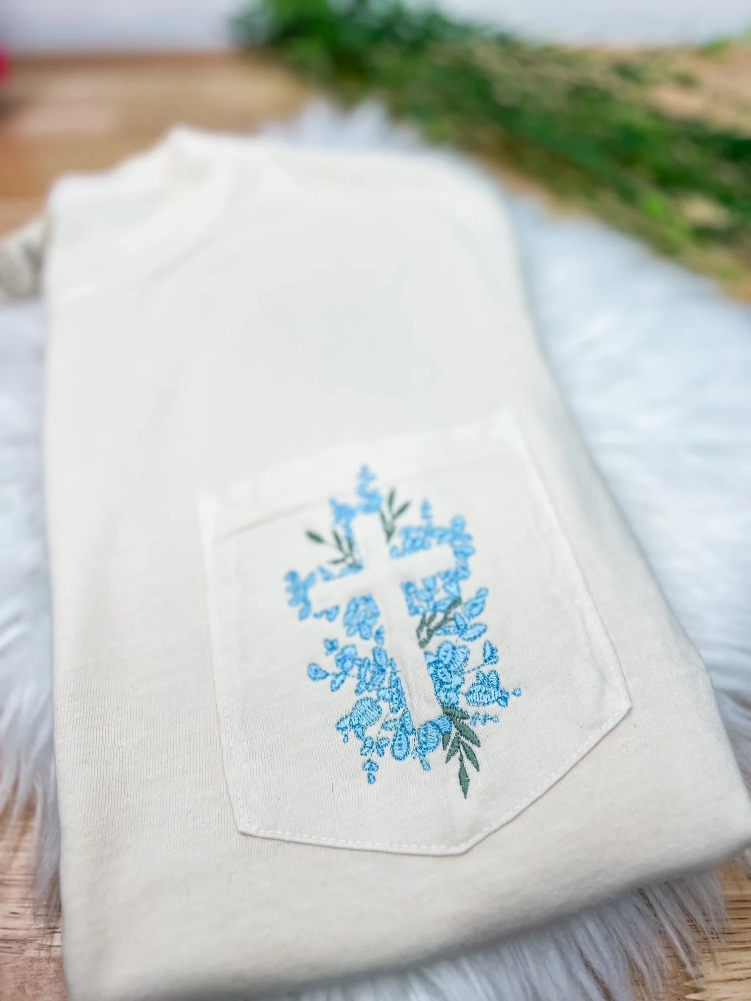 Floral Cross Embroidered Pocket Tshirt