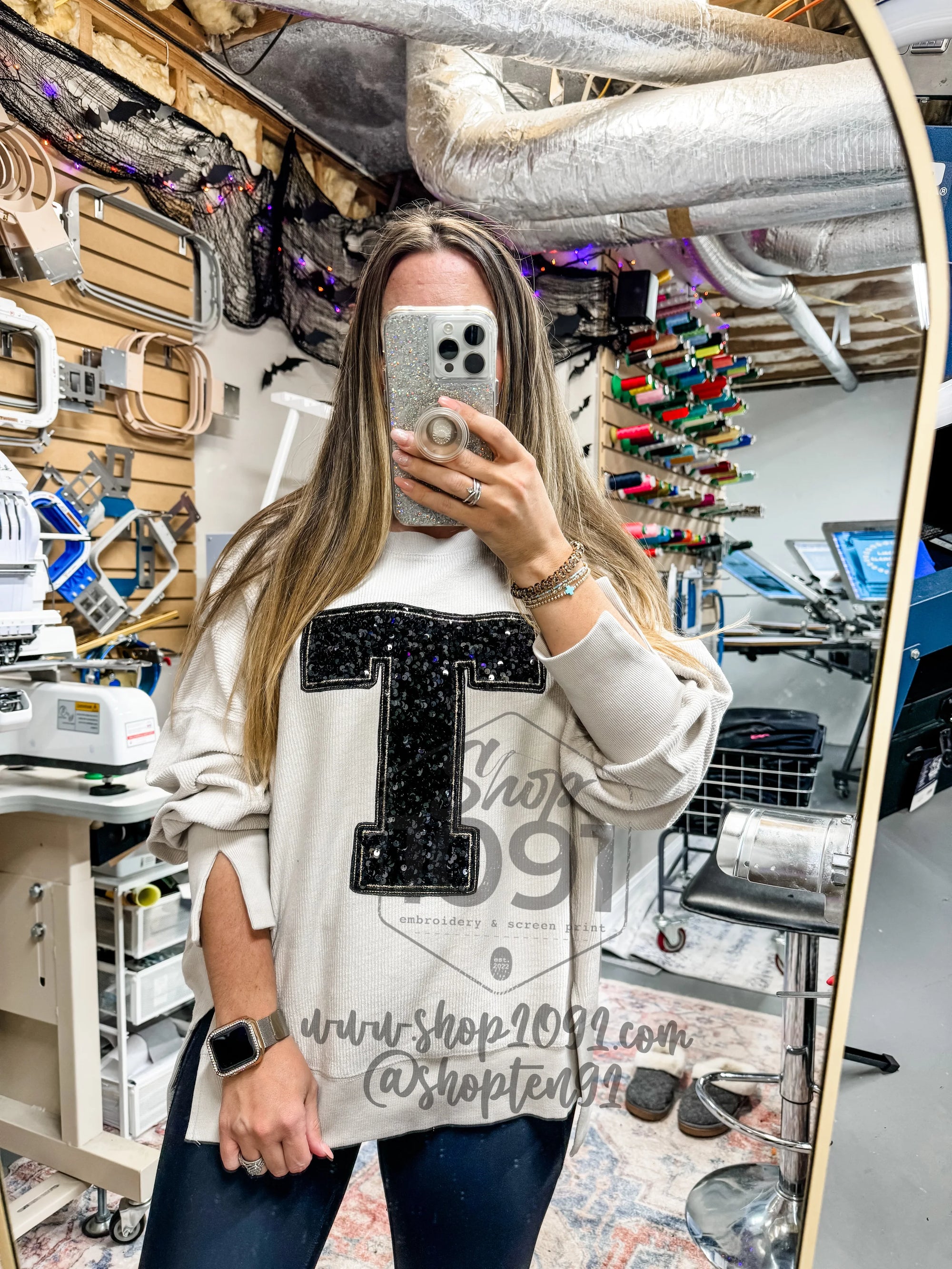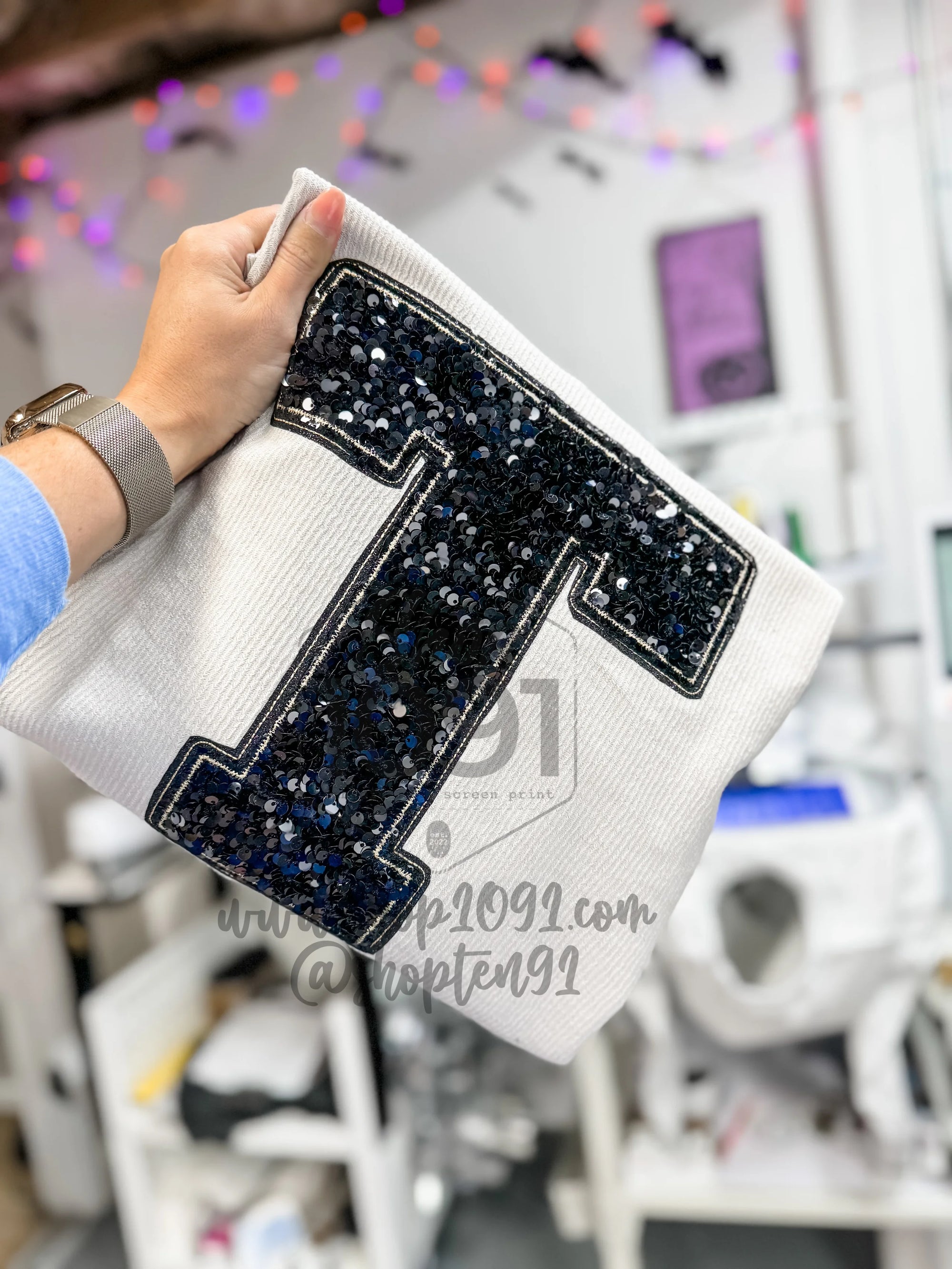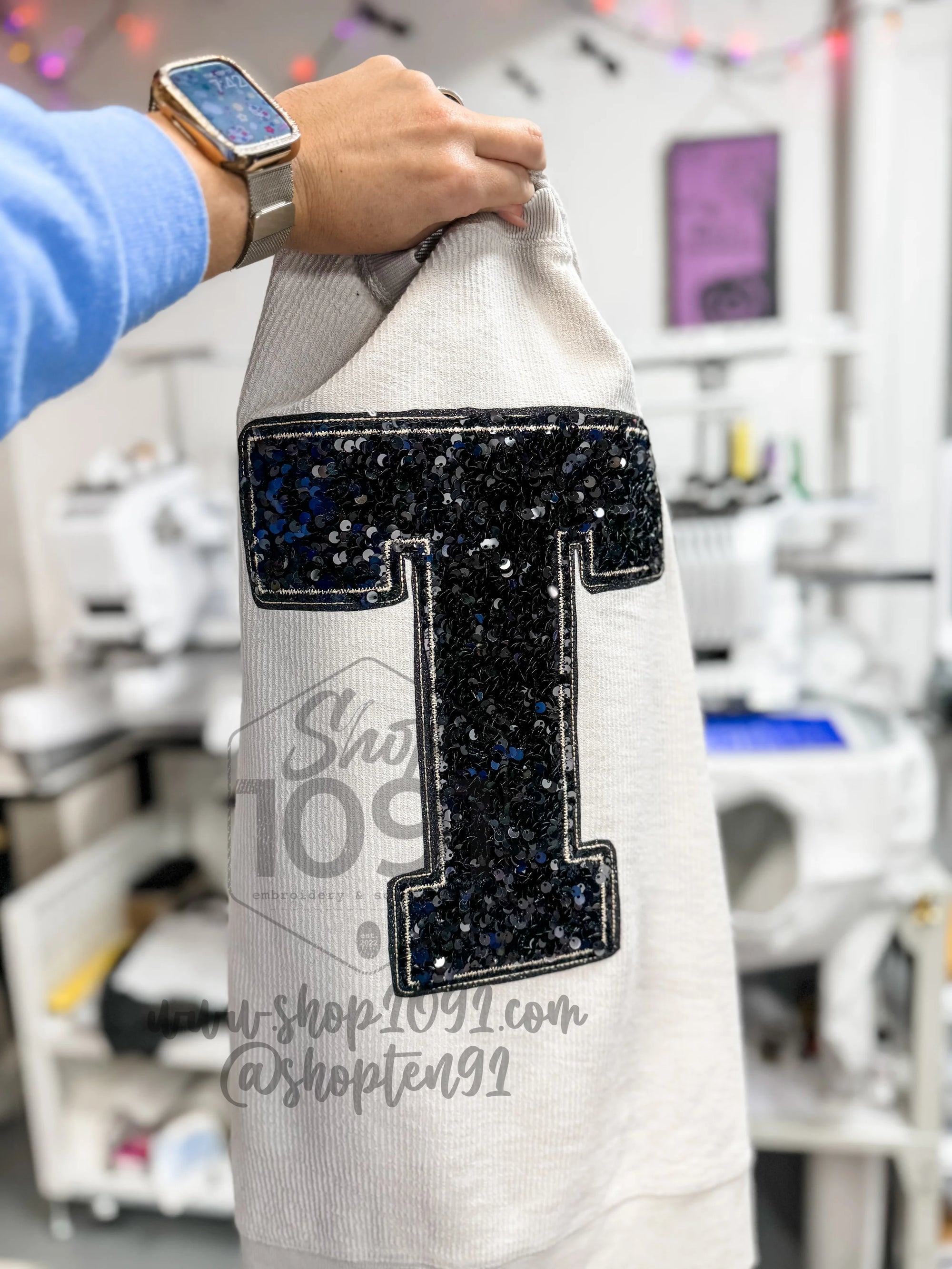 Sequin Varsity Letter Crew